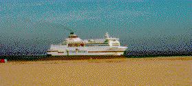 We sat on the beach at Ouistreham, eating ice-cream (and stuff) and watching the sand-sailers, until the ferry came in. Owing to the sightlines, it actually looks like it is sailing right up onto the beach, but in fact it comes in at a small inlet. Then, on to the ferry, and back to Portsmouth for the trip home.