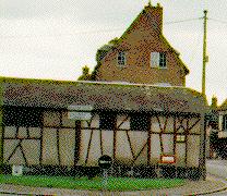 Then we pedalled over miles of flat farming land with lots of tiny villages with half-timbered houses (US readers can think of the fake 'Elizabethan' or 'Mock Tudor' style houses which were so popular in the 50s and 60s - but these are the real thing), as well as some very fancy new houses. Some of the old churches had new spires, presumably replaced after the war.