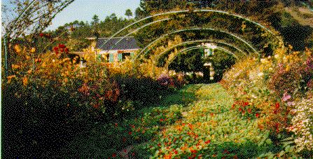The garden was amazing, with far too many flowers out for the time of year. It also includes his water garden, whose water-lilies feature in a large number of his paintings (though only a couple were out at that time). The garden was full of tourists, including a great many with American accents, and we overheard a number of 'gosh, we passed them bicycling...' type comments. We had a nice but overpriced cup of tea (15 francs each) at the Ferme tea-room. (That's 'ferme' 'farm', not 'fermé' 'closed'.) Then we headed back to Vernon to find the campsite.